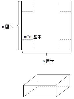 在一张尺寸为n * n厘米的正方形硬纸板的四个角上,分别裁剪掉一个m * m厘米的小正方形,就可以做成一个无盖纸盒,请问这个无盖纸盒的最大体积是多少?