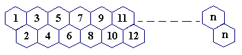 一只蜜蜂在下图所示的数字蜂房上爬动,已知它只能从标号小的蜂房爬到标号大的相邻蜂房,现在问你:蜜蜂从蜂房M开始爬到蜂房N,1=<M<N<=100,有多少种爬行路线?