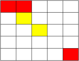 一行包含两个正整数m,n,以一个空格分开,分别代表棋盘的大小,棋盘上有颜色的格子的数量。