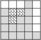 暴雨过后,如果一个方格向左右两侧延伸都能到达瓦片占据的方格,它就会积水。所以图中波浪线格子在暴雨后会积水,屋顶的积水方格总数为 3。
