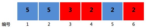 对于第 5 组至第 6 组数据, 1 ≤ n ≤ 100000, 1 ≤ n ≤ 100000,且不存在出现次数超过 20 的颜色;